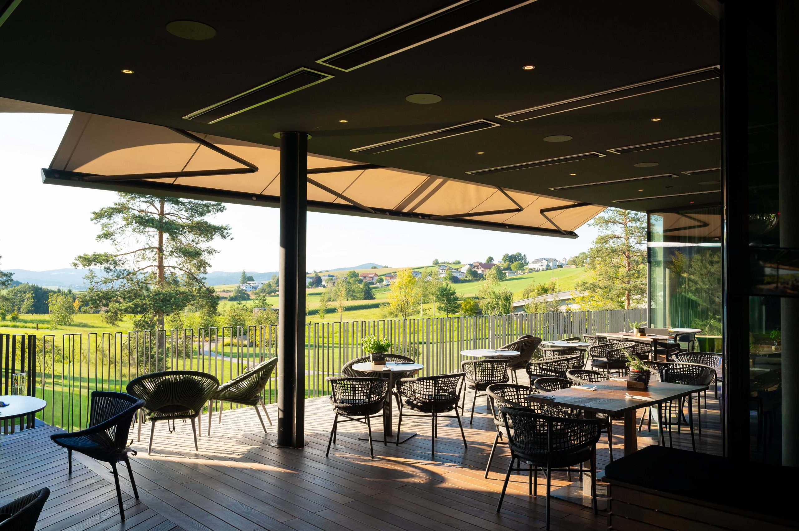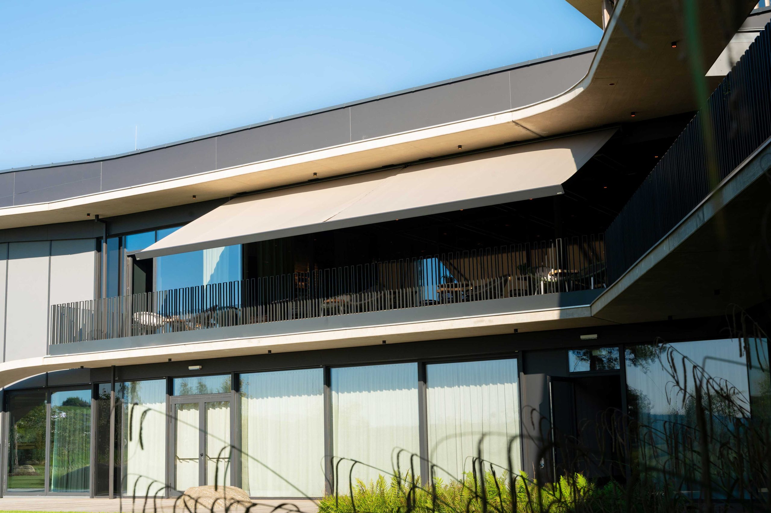 Am LOXONE campus durfte Sonnenschutz Rainer zahlreiche zipScreens sowie eine hochwertige Markilux Markise MX 4 montieren. Die Lösung bietet effektiven Sonnen- und Hitzeschutz, sorgt für blendfreie Innenräume und fügt sich harmonisch in das Gesamtkonzept des Campus ein. Dank der flexiblen Steuerung kann das Tageslicht optimal genutzt werden, was Komfort und Wohlbefinden im Innenraum deutlich steigert. Die Markise im Restaurant dient zudem als Regenschutz und schützt bei starker Abendsonne vor Blendlicht.