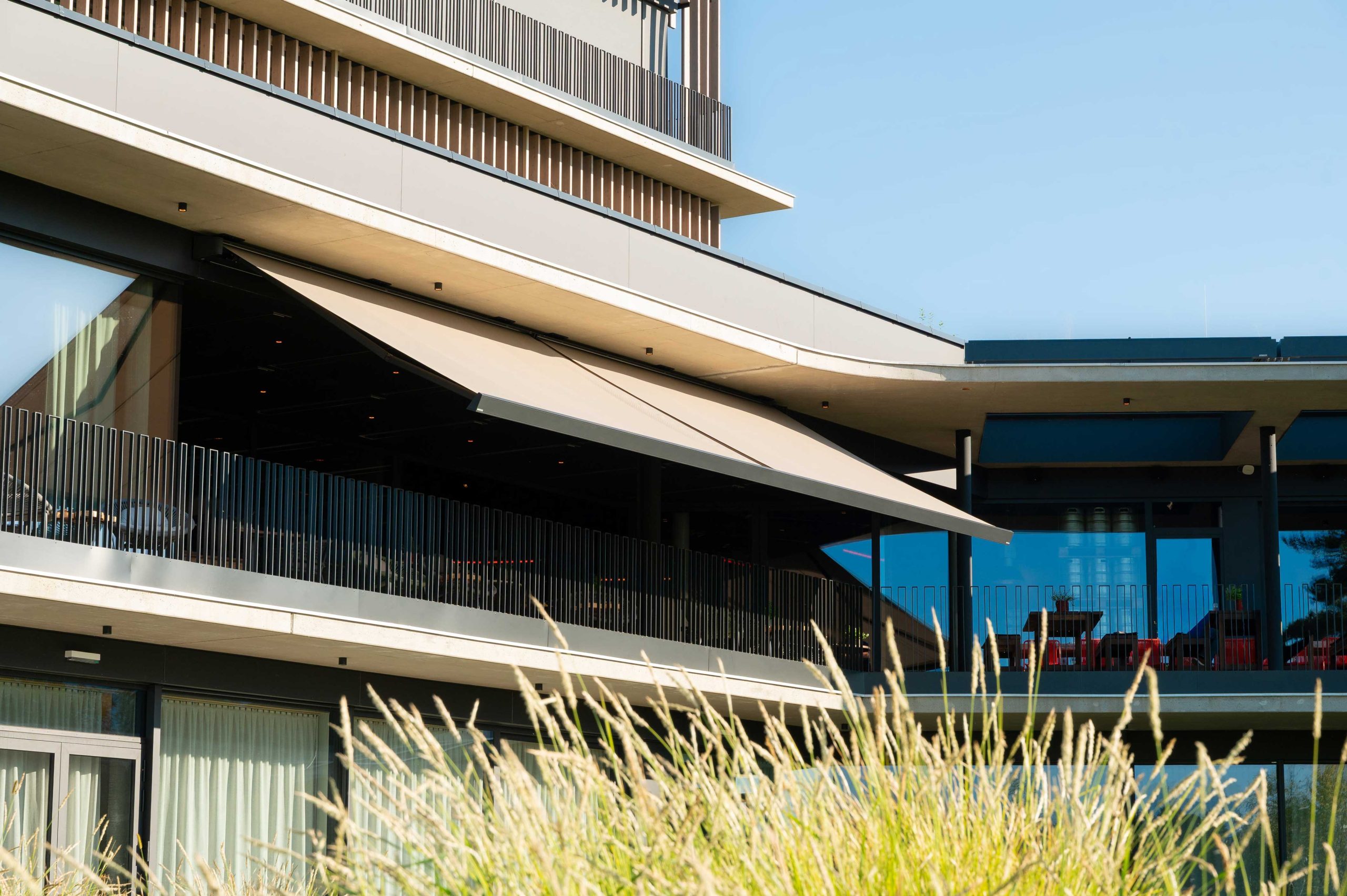 Die Markilux Gelenkarm-Kassettenmarkise MX-4 begeistert durch ihr modernes, klares Design mit einer umlaufenden Sichtblende und sanften Rundungen. Dank der innovativen Bionic-Sehne aus hochreißfesten Hightech-Fasern bietet sie höchste Stabilität und eine langlebige Kraftübertragung – auch bei großen Anlagen. Die MX-4 ist koppelbar bis zu einer beeindruckenden Breite von 14 Metern und somit ideal für weitläufige Terrassen oder gewerbliche Außenbereiche.