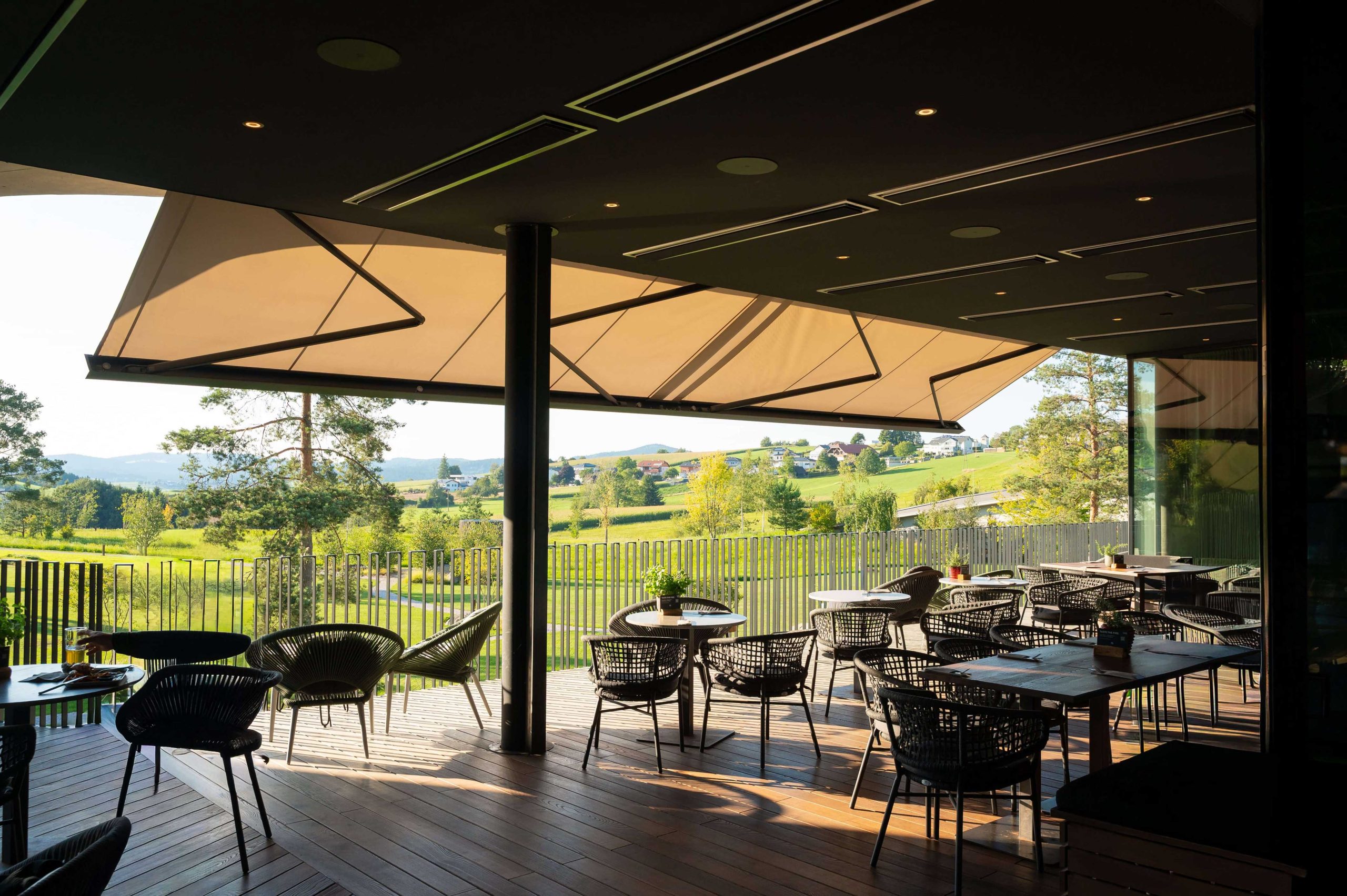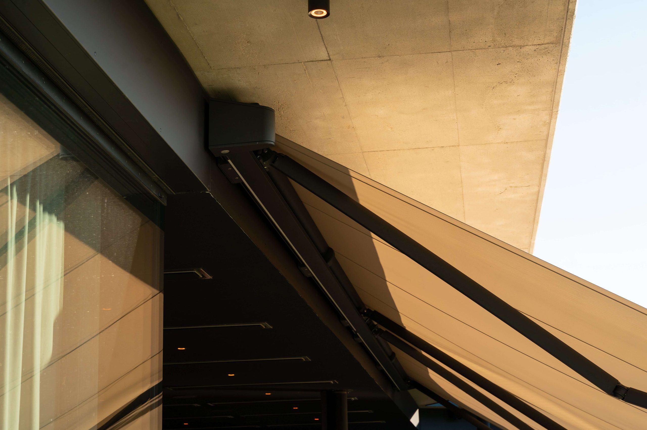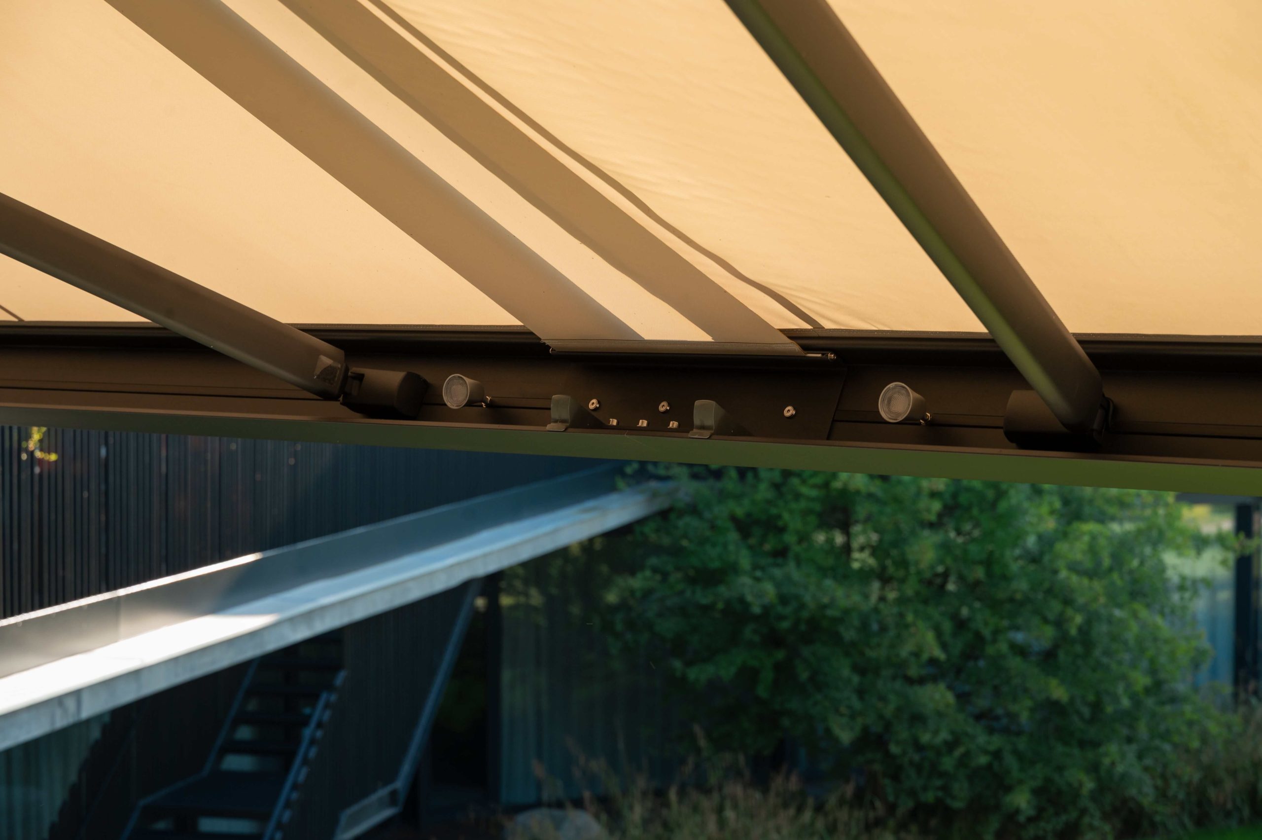 Für eine stimmungsvolle Atmosphäre lässt sich die Markise optional mit LED-Spots in den Seitenklappen oder im Ausfallprofil, externer Beleuchtung, farbigem Licht oder einer eleganten LED-Line in der Kassette ausstatten.